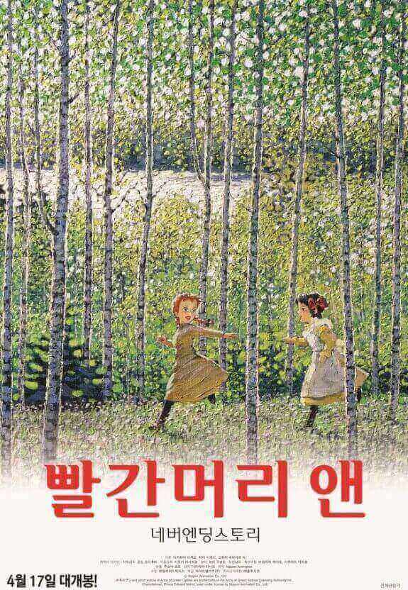 영화 <빨간 머리 앤: 네버엔딩스토리> 어릴 때 텔레비전 시리즈로 봤던 추억의 애니메이션, 1979년 일본 TV에서 50부작으로 제작되어 워낙 유명해진 빨간 머리 앤으로 알고 있지만 루시 모드 몽고메리의 대표작으로 작가 자신의 삶을 앤 셜리에 빗대어 묘사한 작품이며, 원작이 "Anne of green gables(초록색 지붕집의 앤)이고 그 배경이 된 캐나다 초록색 지붕은 캐나다 국가 사적지자 세계적인 관광명소이다.