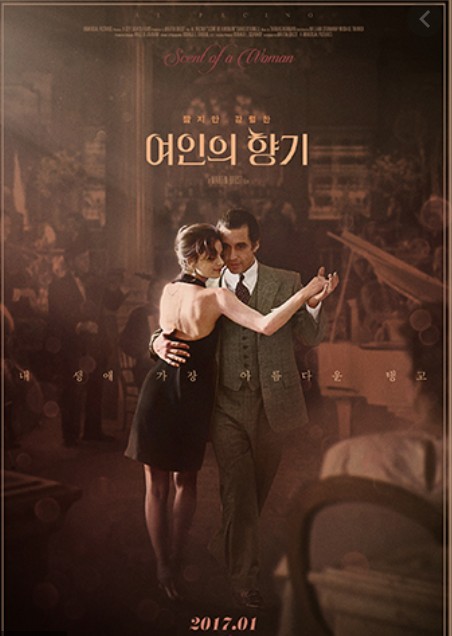 좀 오래된 영화이지만 알파치노의 젊은 시절의 매력이 확 끌리고, 오스카 남우주연상에 7번이나 노미네이트 되었던 알파치노가 기어이 오스카 남우주연상을 받은 영화이기도 하면서 힘들더라도 인생은 계속 살아갈 의미가 있다는 굉장히 강력한 메시지가 우리를 치유해 주는 멋진 영화로써 감독 마틴 브레스트, 주연 알 파치노(프랭크 술레이드 역), 조연 크리스 오도넬(찰리 심스 역), 제임스 레브혼(미스터 트래스크 역), 가브리엘 앤워(도나 역), 필립 세이모어 호프(조지 윌리스 주니 역) 등이 출연하였음.